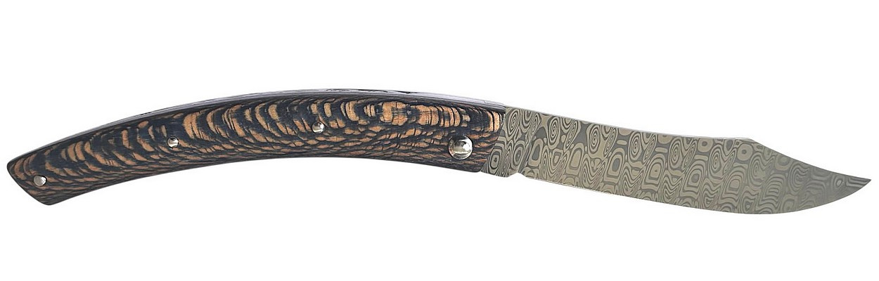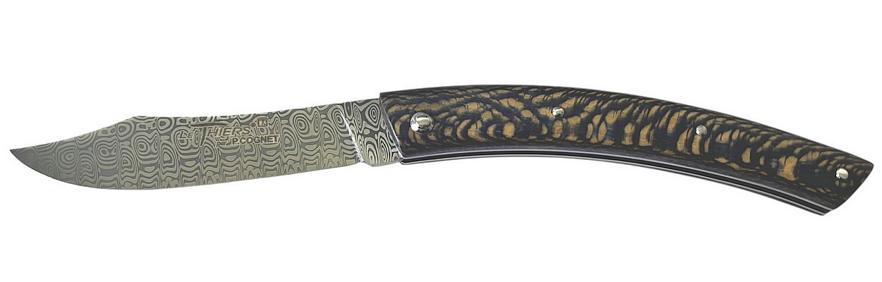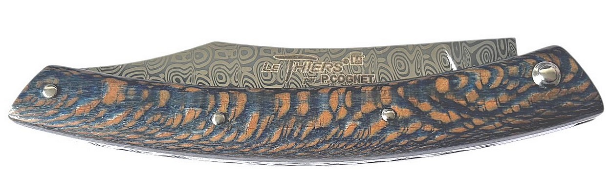 Couteau fermant Le Thiers® par P. Cognet avec un manche en bois de platane stabilisé.