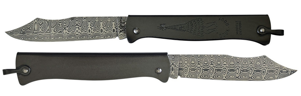 Couteau de poche Douk-Douk® grand modèle avec une lame en Damas « Ladder» 200mm (ouverts).