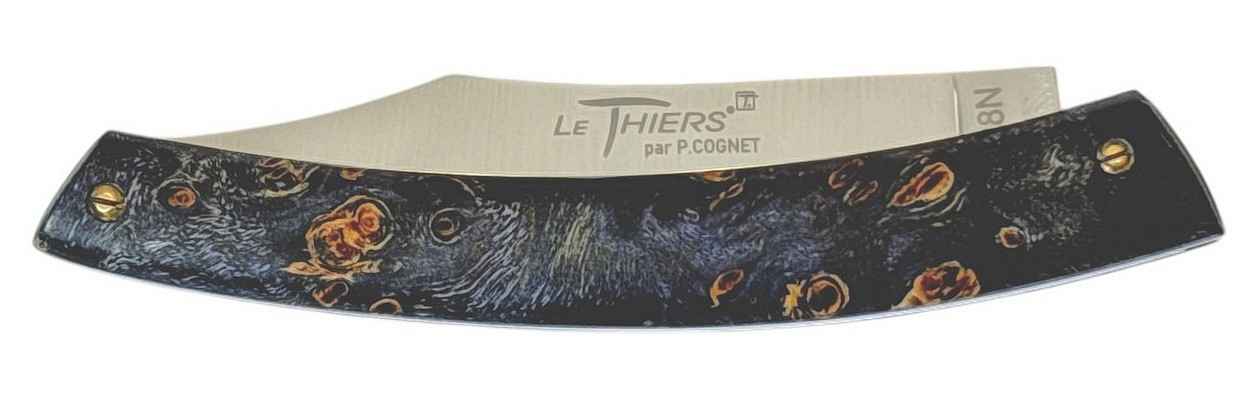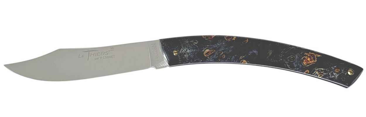 Le couteau Le Thiers® avec un manche en fourche de peuplier stabilisé.