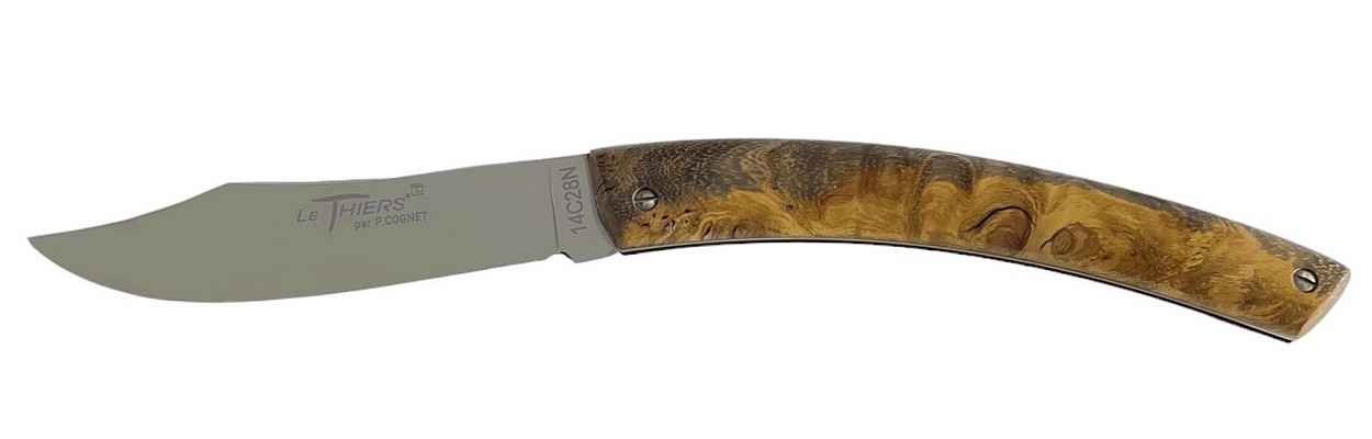 Couteau Le Thiers® par P. Cognet, manche en Loupe de frêne stabilisée.