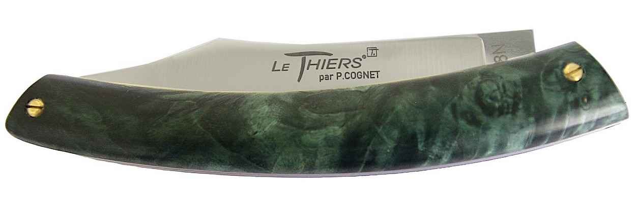 Couteau fermant le Thiers® par P. Cognet manche en érable stabilisé vert sapin.