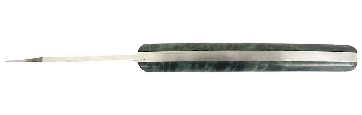 Ce couteau le Thiers® par P. Cognet, manche en bois d’érable stabilisé est constitué d’une couleur vert sapin avec des nuances allant du vert foncé au vert clair.