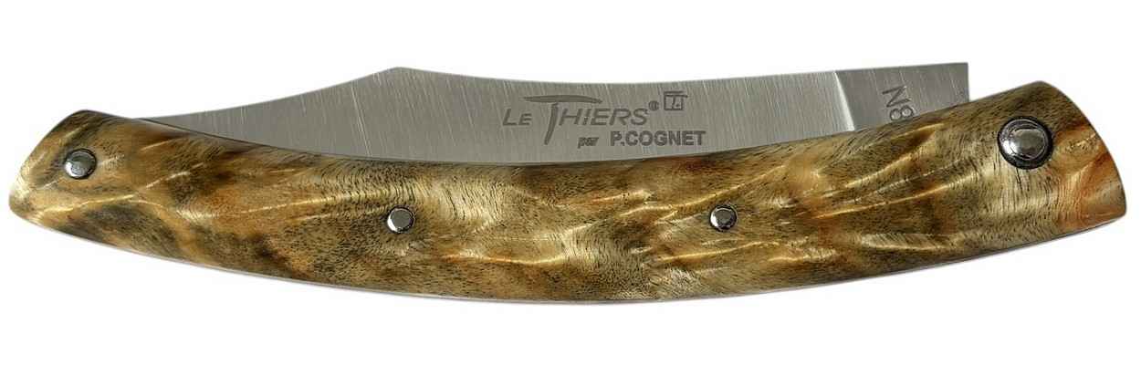 Sobre et authentique, ce couteau Le Thiers® par P. Cognet - manche en fourche de peuplier représente bien notre savoir-faire d'artisan coutelier.