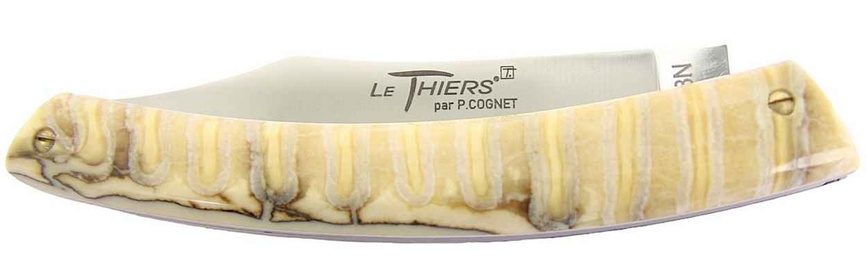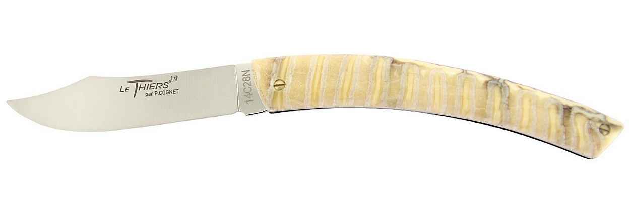Couteau fermant Le Thiers® par P. Cognet manche molaire de mammouth avec intercalaire blanc.
