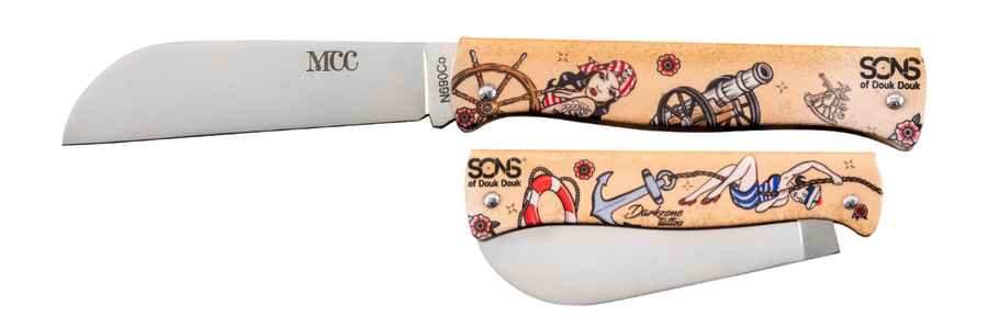 Le couteau de poche Sons of Douk-Douk® thème Marin, conçu par la Manufacture de coutellerie Cognet, s'inspire des tatouages Old School et de Sailor Jerry.