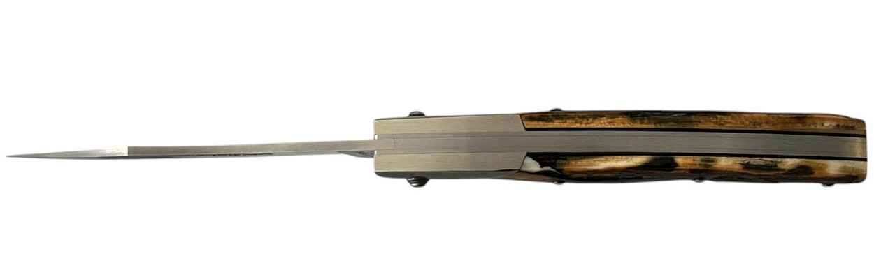 Couteau fermant le Thiers® par P. Cognet, manche en croûte de mammouth stabilisée et mitre en maillechort.