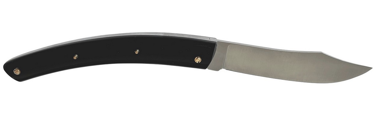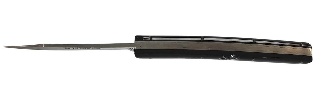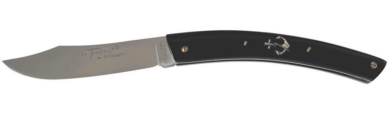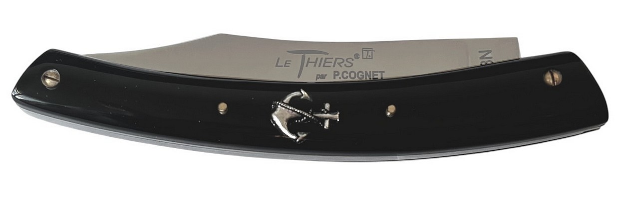 Couteau pliant Le Thiers® par P. Cognet, réalisé avec un manche en résine noire embelli d'incrustation de charm sur l’une de ses faces.
