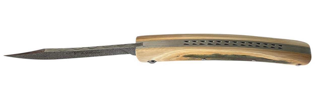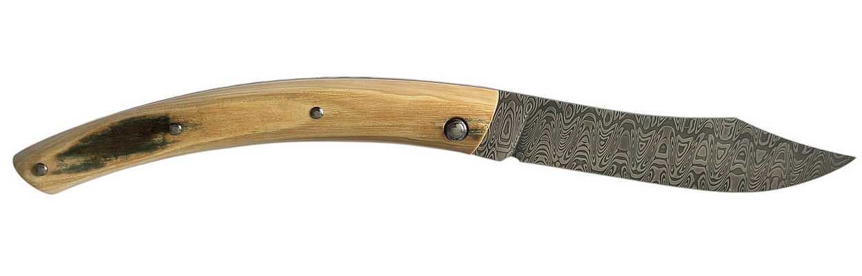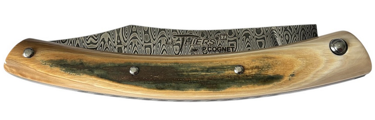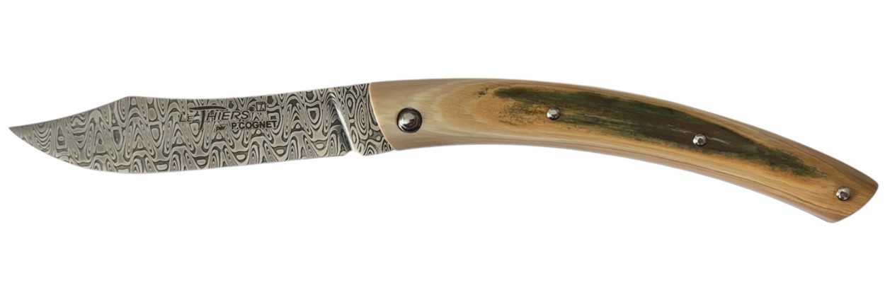 Couteau fermant Le Thiers® par P. Cognet avec un manche en Ivoire de mammouth et une lame en damas Ladder.