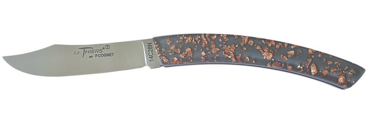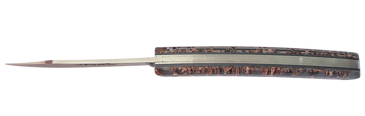 Couteau de poche Le Thiers® par P. Cognet avec un manche en résine inclusion feuille de cuivre.