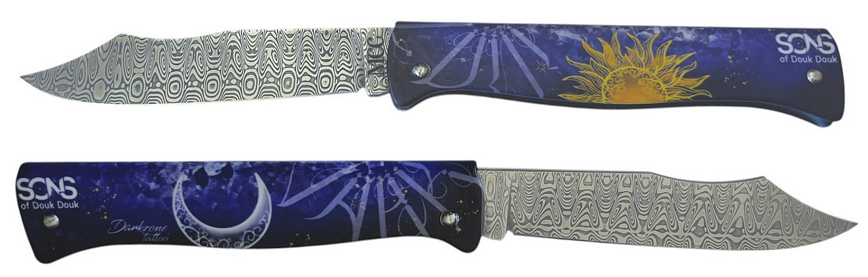 Couteau de poche Sons of Douk-Douk® au thème Mauresque avec une lame en damas Ladder.